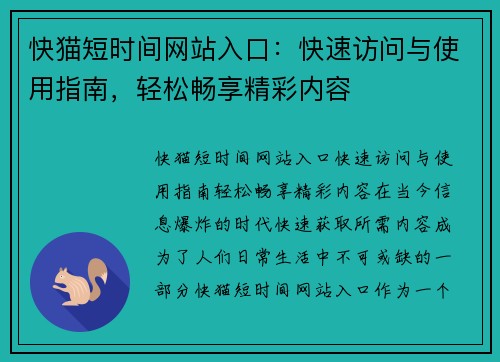 小视频在线:探索生活中的精彩瞬间与创意分享 在当今数字化时代,短视频已经成为人们日常生活中不可或缺的一部分。无论是社交媒体平台上的搞笑片段,还是生活技巧的分享,短视频以其生动、直观的特点吸引了无数观众。尤其是“小视频在线”这一概念,正逐渐成为一种新的文化现象,帮助人们记录生活中的精彩瞬间,并分享...